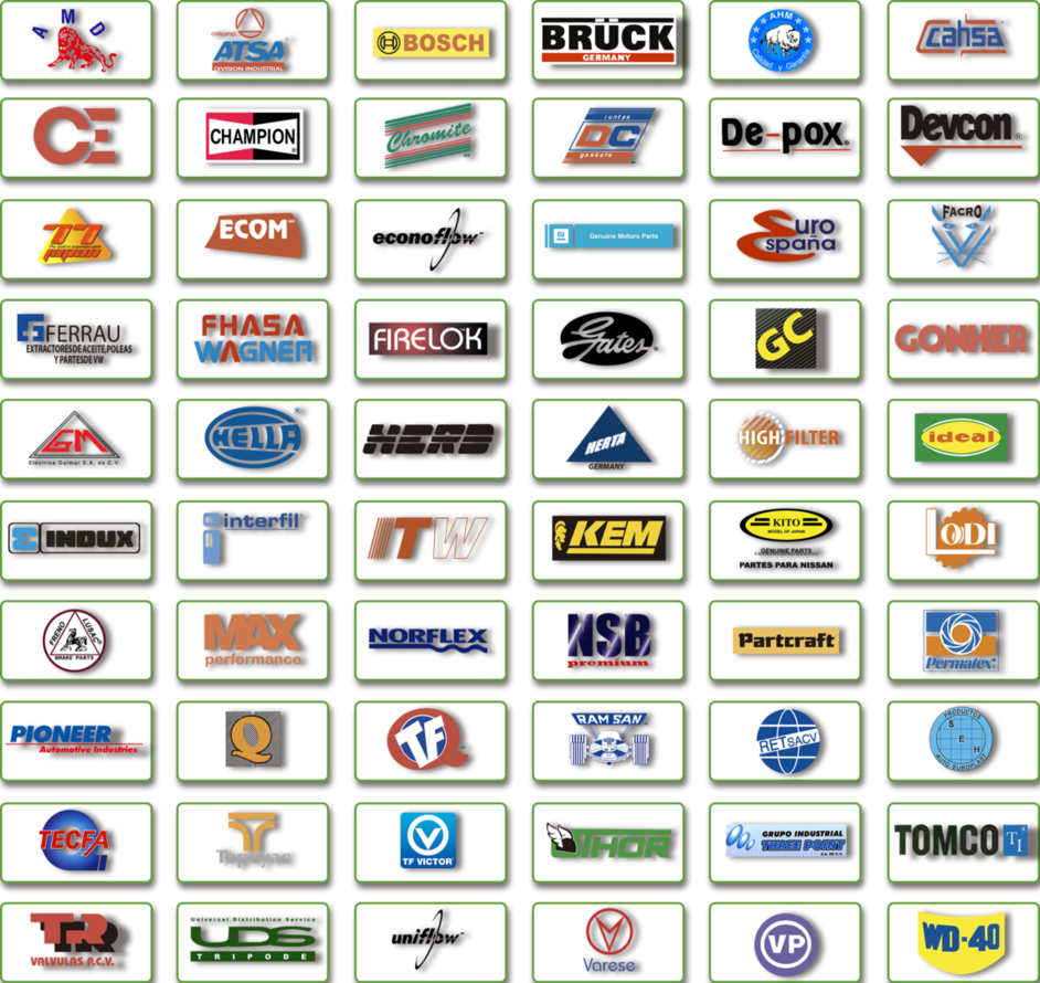 MOTOR:Bandas, poleas, aumentos de bujía, bayonetas de aceite, birlos de balancín, bombas de aceite, juntas de todo tipo, aumentos de válvula, capuchones ó sellos de válvulas, cuñas de válvula, sellos de monoblock sueltos ó en juego, kits de distribución, lápiz de bomba de aceite, sensor de árbol de levas, soportes de balancín, varillas alzaválvulas, retenes y más.